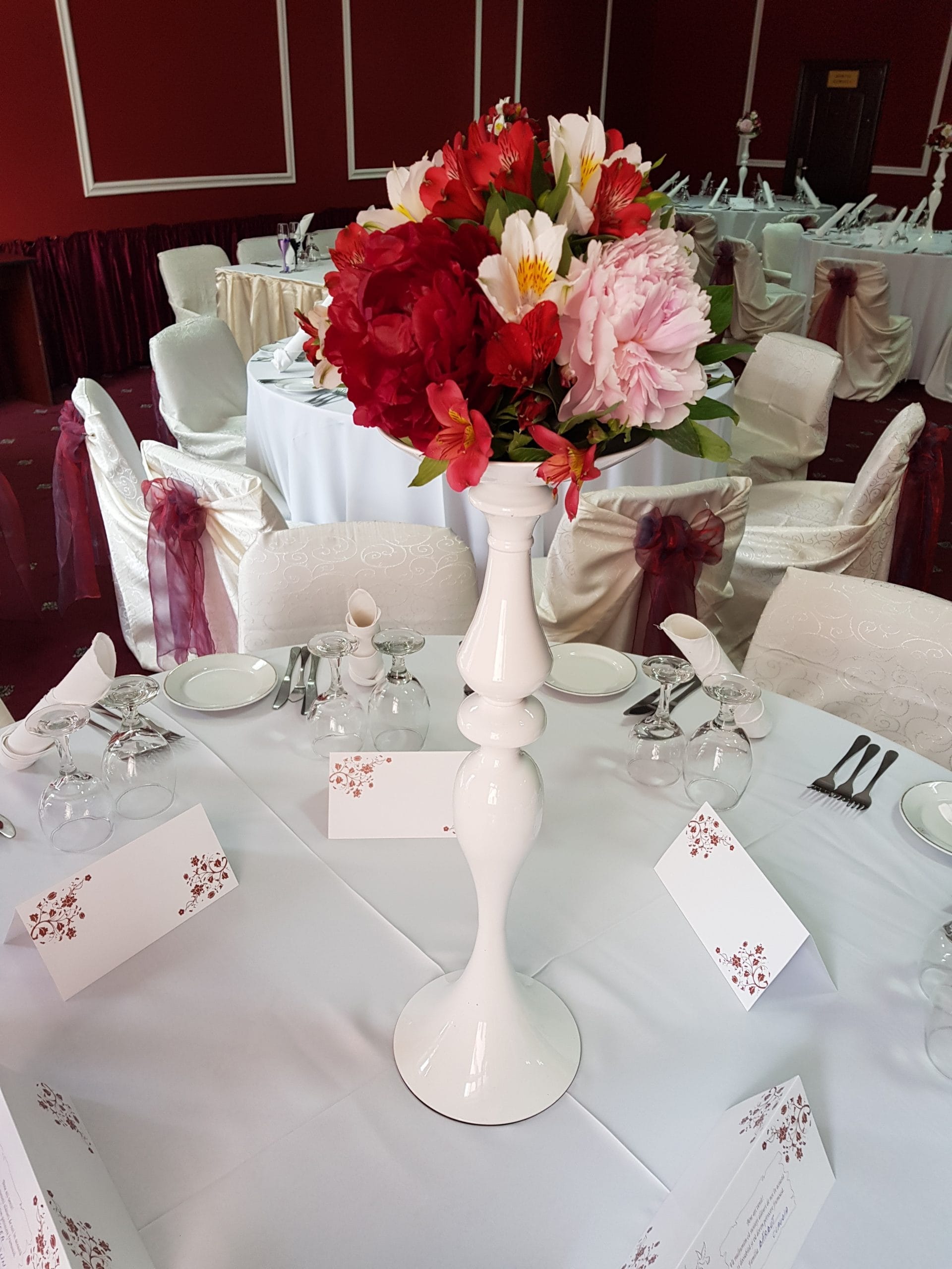 Aranjament floral cu bujori,pentru nunta,simplu si elegant in acelasi timp,potrivit atat pentru evenimentele realizate in aer liber cat si pentru cele din interior.