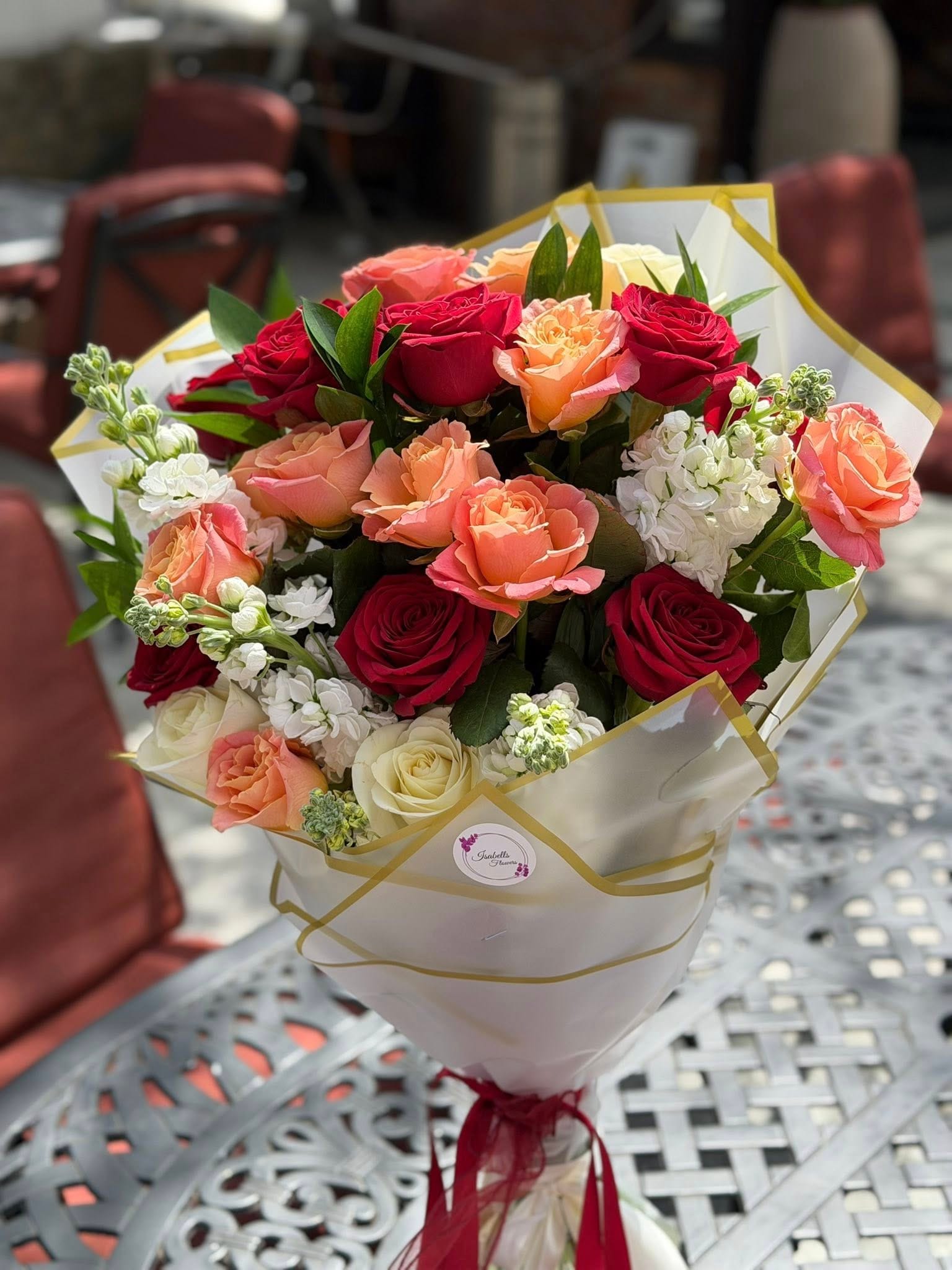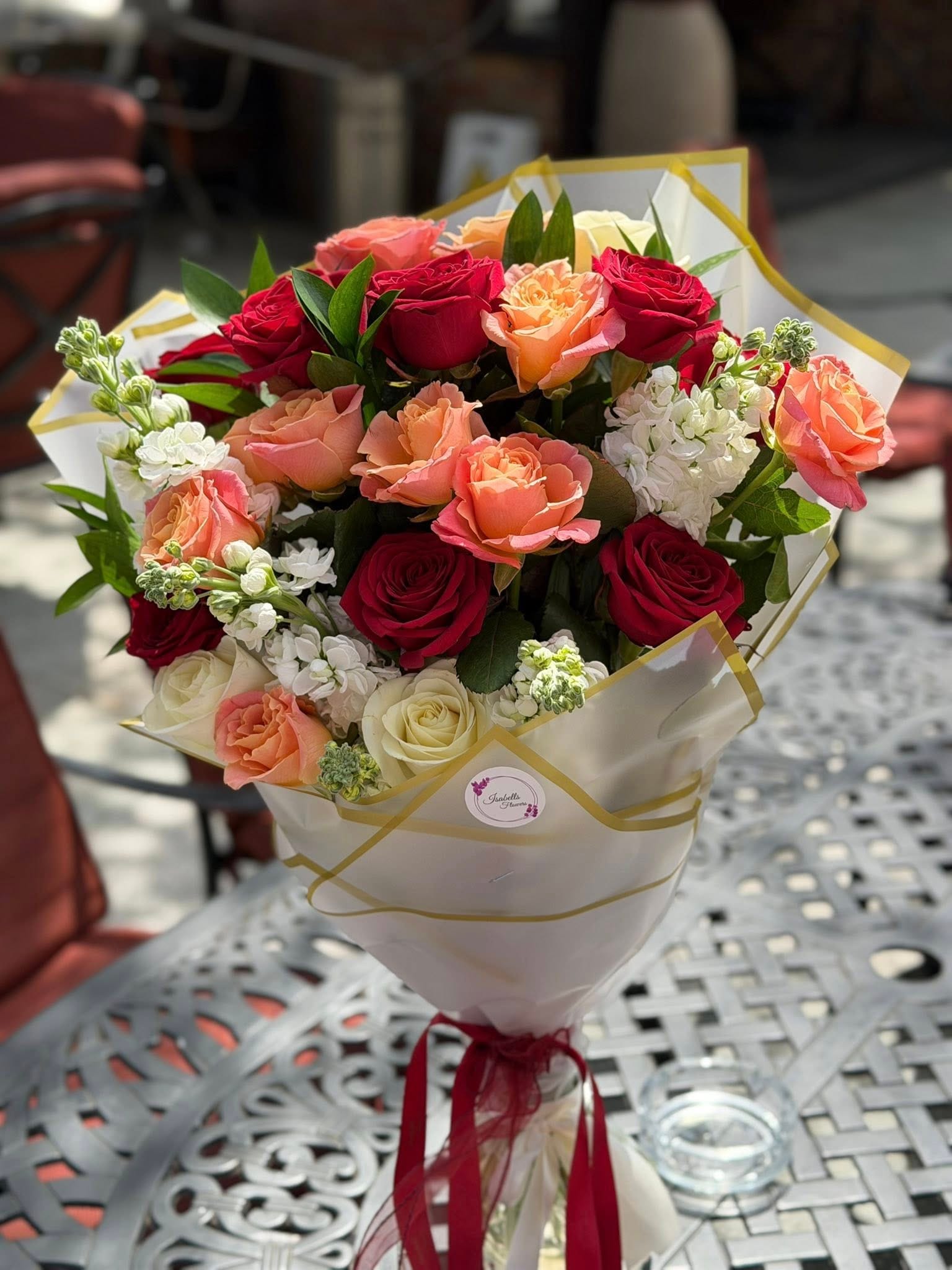 Acest buchet este realizat pe loc,de catre floristul nostru si cuprinde 29 fire flori in total . El poate sa difere in functie de florile disponibile .