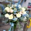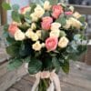 Buchetul contine 25 fire trandafirii albi si 10 fire mini trandafiri albi.