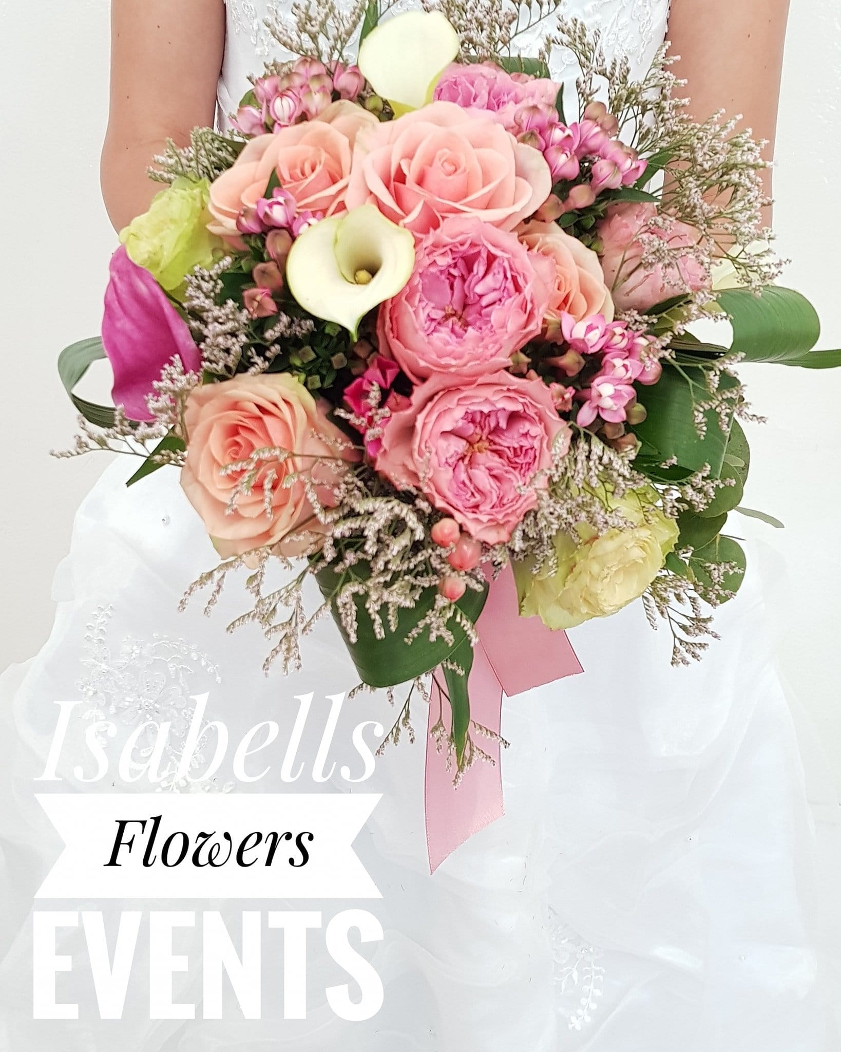 BUCHET REALIZAT INTR-O COLORISTICA VESELA CU HORTENSIE,TRANDAFIRI,LISIANTHUS SI FREZIE